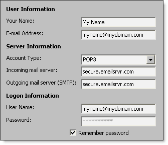 - User Name - Enter your entire email address (e.g., myname@mydomain.com).