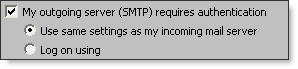 11.Check the My outgoing server (SMTP) requires authentication box. Leave the default setting, Use same settings as my incoming mail server.